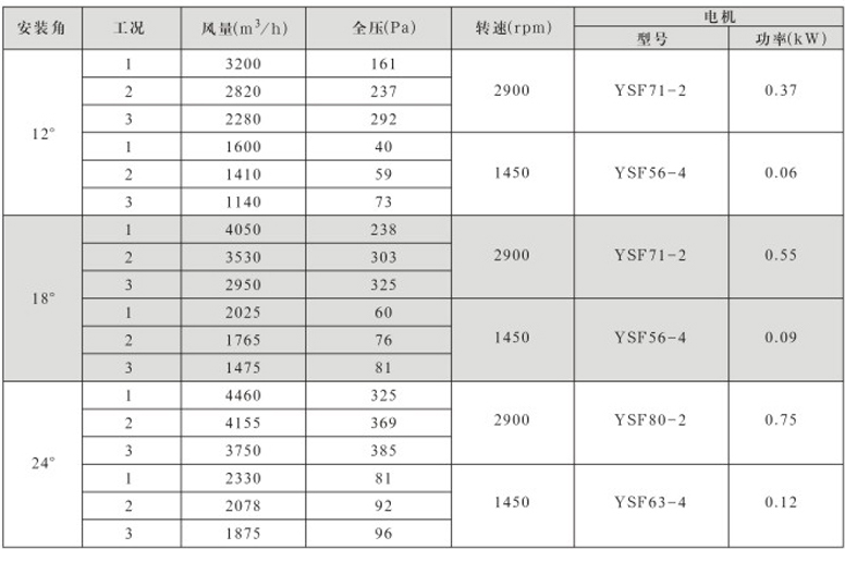 DTF(R)-5.6(9叶)系列地铁、隧道轴流风机性能表