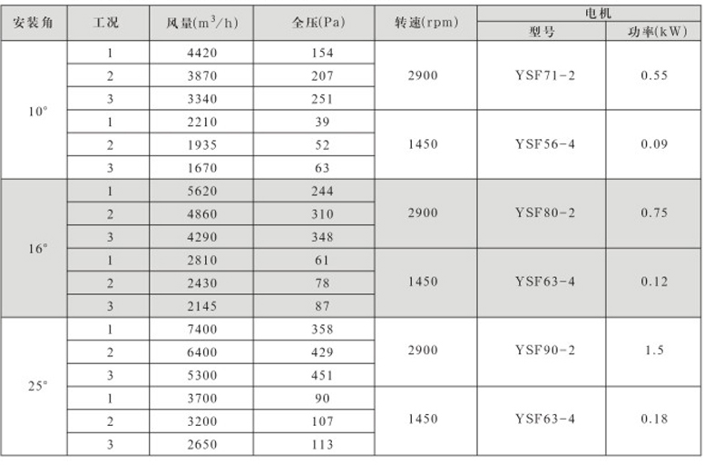 DTF(R)-4.5(6叶)系列地铁、隧道轴流风机性能表