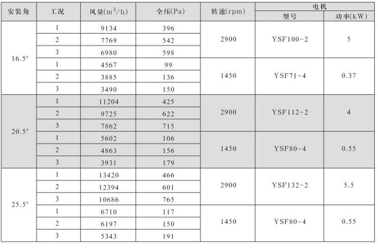 DTF(R)-5(9叶)系列地铁、隧道轴流风机性能表